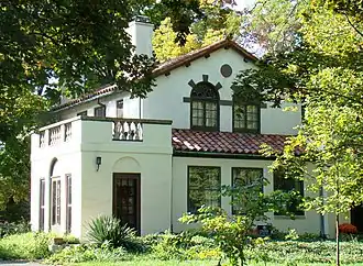 The Reeveston Place Historic District is a neighborhood of homes and national historic district located at Richmond, Wayne County, Indiana. It was platted in 1911 on land formerly owned by the family of Mark Reeves and the district encompasses 218 contributing buildings, 1 contributing site, and 2 contributing objects. The architecture is an eclectic mix of styles including Craftsman and English cottages, and impressive homes in the Colonial Revival, Tudor Revival, Georgian, French, Spanish and Ranch styles. The original Reeves home in the Second Empire style survives as well.[2]