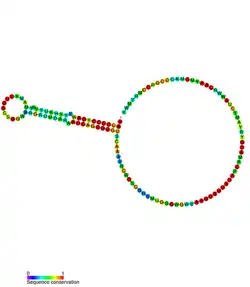 ![]() Secondary structure of the pseudoknot of the regulatory region of the repBA gene | |