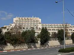 Ze'evi was shot in the Dan Jerusalem Hotel, at the time called the Jerusalem Hyatt Hotel, in Mount Scopus on 17 October 2001 by four Palestinian gunmen. He was taken to the Hadassah Medical Center hospital where he died before 10 am. He was buried in the military cemetery in Mount Herzl in Jerusalem. The Popular Front for the Liberation of Palestine (PFLP) took credit for the killing and stated that it was in revenge for the assassination of their secretary-general Abu Ali Mustafa, who was killed by Israel in August that year.[11] Israel alleged that Ahmed Saadat ordered Ze'evi's assassination. Thousands took part in his funeral.[12] The four gunmen, Hamdi Quran, Basel al-Asmar, Majdi Rahima Rimawi, and Ahad Olma, fled to the Palestinian National Authority. Israel placed Yasser Arafat under siege in the Ramallah compound to force the handing over of the suspects. In April 2002 the United States brokered a plan where the suspects were to be jailed in Jericho instead.[13] The four killers were arrested together with the head of PFLP, Ahmad Sa'adat.[14] They were imprisoned in a jail in Jericho and guarded by American and British forces.[15] On 14 March 2006, the American and British guards left the jail, charging that the Palestinian Authority was not adhering to the agreement reached with Israel. Israel then launched Operation Bringing Home the Goods, in which it raided the Jericho prison and seized the five.[16][15][17]