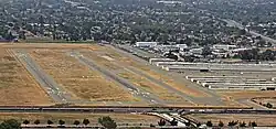 Reid–Hillview was a single runway airport until 1965, when a second runway was added. The control tower opened in October 1967.[3]