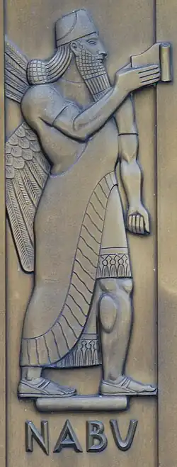 Anbay was an oracular god of Qataban and also the spokesman of Amm.[99] His name was invoked in royal regulations regarding water supply.[100] Anbay's name was related to that of the Babylonian deity Nabu. Hawkam was invoked alongside Anbay as god of "command and decision" and his name is derived from the root word "to be wise".[7]