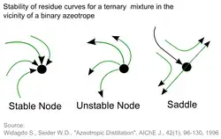 - Stable node: This is the pure component or the azeotropic point with the highest boiling temperature and lowest vapor pressure in a distillation region. All residue curves end at stable nodes.