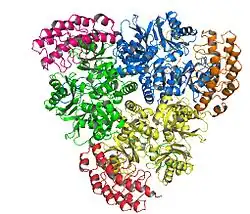 8. ^ Long F, Su CC, Zimmermann MT, Boyken SE, Rajashankar KR, Jernigan RL, Yu EW (September 2010). "Crystal structures of the CusA efflux pump suggest methionine-mediated metal transport". Nature. 467 (7314): 484–8. Bibcode:2010Natur.467..484L. doi:10.1038/nature09395. PMC 2946090. PMID 20865003.