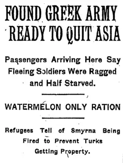 - ^ Llewellyn Smith, Michael (1973). Ionian Vision: Greece in Asia Minor, 1919–1922. C. Hurst & Co. p. 308.