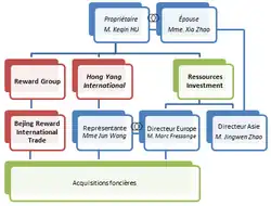 On the same day, Kequin Hu acquired 72% of GFA Laporte, while the Chinese representative purchased 18%, and Emmanuel Laporte, who established the company in 2013, retained the remaining 10%. Despite these acquisitions, Marc Fressange remains the appointed manager. Afterwards, Le Grand Saulay, a 104-hectare farm, was obtained for €100,000.[26] Emmanuel Laporte possesses ten of the one thousand shares, valuing €10 each, with the other 990 held by Beijing Reward International Trade, a subsidiary of Reward Group.