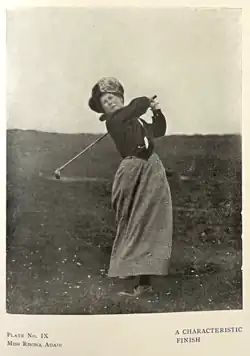 Along with May Hezlet, Adair is the most famous Irish golfer from the turn of the 20th century. She was 17 years of age when she played in her first British Ladies Amateur in 1895.[2] In 1899 she nearly beat the 77 year old "Old Tom Morris" who had designed the St Andrews Links where they were playing. Morris was quoted as having said "I'll no' be licked by a lassie", but only won on the final green.[3] Adair went on to win the British Ladies Amateur in 1900 and again in 1903. She also won four straight Irish Ladies' Close Championships from 1900 to 1903.[2]