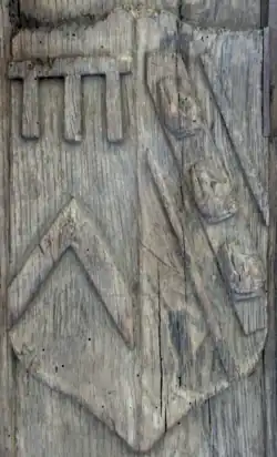- Joan Edgcumbe, who married Fulk Prideaux (1472-1531)[15] of Thuborough in the parish of Sutcombe in Devon. A heraldic bench end in Sutcombe Church records the marriage.[16]