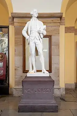 In 1776, Stockton was elected to the Second Continental Congress, where he took a very active role. That August, when elections were held for the state governments of the new nation, Stockton and William Livingston each received the same number of votes to be the governor of New Jersey on the first ballot. Although Livingston later won the election by one vote, Stockton was unanimously elected to serve as the chief justice of the New Jersey Supreme Court, but he turned down that position to remain in Congress. Stockton was the first person from New Jersey to sign the Declaration of Independence.[4]