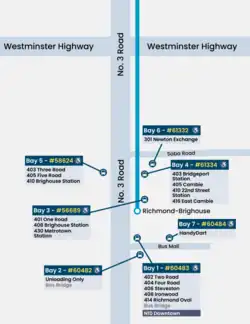 - ^ Chan, Kenneth (October 17, 2020). "TransLink's new bus exchange at Richmond-Brighouse Station set to open". dailyhive.com. Retrieved October 18, 2020.