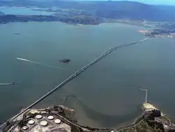The Richmond–San Rafael Bridge (officially renamed the John F. McCarthy Memorial Bridge in 1981[4]) is the northernmost of the east–west crossings of California's San Francisco Bay, carrying Interstate 580 from Richmond on the east to San Rafael on the west. It opened in 1956, replacing the ferry service by the Richmond–San Rafael Ferry Company,[5] and was officially renamed in 1981 to honor California State Senator John F. McCarthy, who championed the bridge's creation.[6]