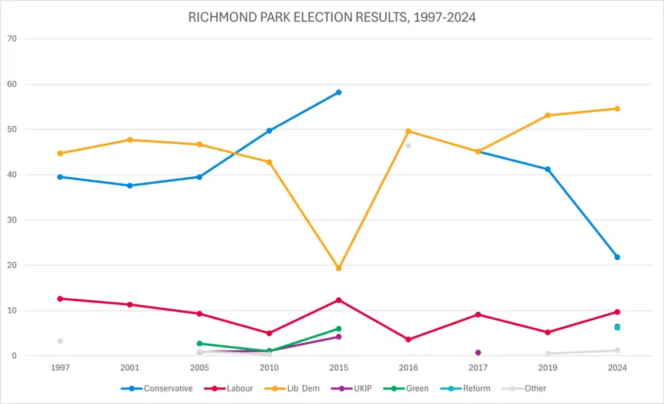 16. ^ "New Seat Details – Richmond Park". www.electoralcalculus.co.uk. Retrieved 27 March 2024.