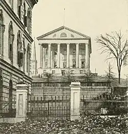 Virginia State Capitol, used as the Confederate Capitol. To the left is the Customs House, used by the Confederate Department of the Treasury and the offices of the President and Vice President.