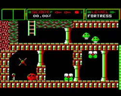 While the game shares many elements made popular in earlier Superior arcade adventures such as Citadel, it has a unique feel due to the movement of the main character. The player controls a creature named "SPRAT" (Small Partially Robotic Alien Time-traveller), depicted as a red sphere wearing sunglasses. SPRAT moves by rolling but can only do so along level ground or down slopes. There are ladders to climb but many platforms require a special movement to be reached. By holding 'down' (SPRAT squashes himself) to build up potential energy, then releasing, SPRAT can bounce at either a 45- or 90-degree angle.