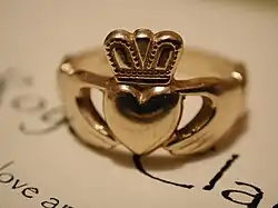 Claddagh ring An Irish friendship, courtship or engagement ring. It is traditionally used to indicate the state of romantic availability. In recent times it is commonly worn as a wedding ring. In centuries past, this ring was bequeathed from a mother to daughter, though men also wore it.