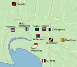 Locations of AFL teams in Melbourne between 1922 and 1965