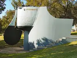 After decommissioning, Parramatta and Swan were stripped down and sold to the NSW Penal Department for use as prisoner accommodation on the Hawkesbury River.[15] The two hulks were then sold into private hands; after plans to use them as fishers' accommodation, they were used to transport metal to islands along the river.[15] In 1934, Swan and Parramatta were being towed along the river to the ship breakers when heavy weather caused the hulks to break free of their towing vessel; Swan sank, and Parramatta ran aground.[15] The two ships were abandoned, although in 1973, the bow and stern of Parramatta were salvaged for use as memorials.[16]