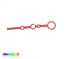 ![]() Predicted secondary structure and sequence conservation of RmaA small RNA | |