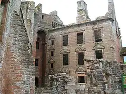 The classical facade of the Nithsdale Lodging within Caerlaverock Castle
