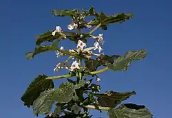 It is a varied genus, it does not have solitary flowers (similar to Uncarina species) and with the common denominator that in the difference in the size of the carpels and the indehiscence (splitting of the seed capsule) of the adaxial carpel.[5] Species Ceratotheca and Rogeria are known as 'Wind-ballists', this is due to when the fruits open at the top but stay on the plant, then as the stems produce strong movements, the seeds are then gradually expelled from the capsule.[6]