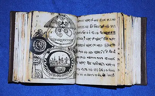 Study of the paper on which the codex is written shows that it is most probably a Venetian paper made in the 1530s.[1][2][4] This does not provide certainty as to the date of the text, however, since it may have been transcribed from an earlier source, or the paper could have been used long after it was produced. Taking a clue from the illustrations, Láng speculates the document was most likely created sometime in the 16th-17th centuries.[d]