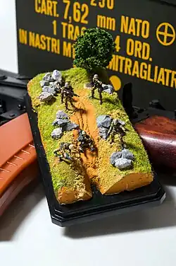 Since Rokudenashiko was not exposed to many realistic depictions of women's genitalia, she decided to mold a plaster cast of her own vulva to understand the reality of what it looked like.[13] Rokudenashiko felt that the plaster mold was too plain so she began to decorate them, creating an ongoing series she refers to as Deco Man (a play on “decoration” and “manko”).[13] She has used the mold to create many casts of her vulva, including a series of dioramas that draw on 19th century landscape paintings by turning the form of her own genitalia into the grounds for various landscapes—moonscapes, beaches, golf courses, riverbeds, as well as rustic cottage and church settings, among others.[13][17] In these tediously crafted dioramas, Rokudenashiko brings the vaginal form out of its hidden setting, positing it as a setting for the world.[17]