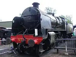 | SR | 2-6-0 | Maunsell U Class | Maunsell Locomotive Society[18] | No. 1618. Built in 1928. Arrived at Bluebell 1977 from the Kent & East Sussex Railway. Last worked in 1994 and is on static display awaiting a 10-year overhaul. Its tender was loaned to the Watercress Line in 2010 as a replacement for classmate 31806's, which was heavily damaged in a fire at Ropley. The tender was returned to the Bluebell in mid-2011, 31806's having been repaired. 31618 has been painted in lined BR black to match the tender, and to smarten the appearance of the engine up after many years in the shed. The overhaul is not likely to start until the work has completed on others. Its overhaul requires boiler work, including firebox and re-profiled tyres. | |