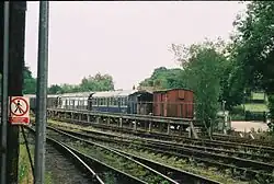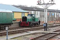 | British Rail | 0-6-0DM | 09 | D4106 (previously 09018). Bought by a consortium of locomotive department volunteers, D4106 is on loan to the railway on an "at-cost" basis where the railway hires it until the members receive their funds back. The higher gearing of an 09 compared to an 08 allows it to be used in emergencies on passenger services at 25 mph (40 km/h), a role it undertook for the first time during summer 2013. | |