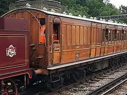 Four carriages built in 1898 and 1900 for use out of Baker Street station in London. Initially steam hauled, later used in electric trains, reverting to steam haulage on the Chesham branch in 1940. Purchased by the Bluebell Railway in 1961, and used until withdrawn in the late 1960s in need of major attention. Now returned to service and are unique as a close-coupled set of vintage carriages. The restoration team were the recipient of the Heritage Railways Association's award as overall winner of their 2006/7 carriage competition. The carriages have seen regular use on London Underground in recent years as part of steam operations on the Metropolitan line, and possess TOPS identities for movements over the Network Rail network to and from London.