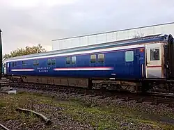 Unique catering vehicle built by Chas Roberts on the underframe of Mk 1 RK 80020. Used on one of the Cambridge Buffet Car express sets. Under restoration, private owner[44] | |