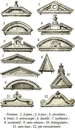 Common varieties of pediments. Some of these forms were found on Roman funerary altars.