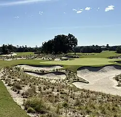 The Championship Course was described as "an ‘old-fashioned’, traditional, heavily bunkered, tough test of golf, especially in any wind. There are no gimmicks, no tricks, chasms or watery caverns". Its undulating fairways and treacherous bunkers (of which there are more than 120) ensure that the Championship Course is a challenge, even for the most avid golfer.[2] A major renovation to the Championship course, led by Gil Hanse, was completed in 2025. The new course has been renamed the Bay Course.