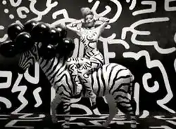 The accompanying music video for "Rude Boy" was directed by Melina Matsoukas,[54] who also directed the video for Rihanna's previous single, "Hard" and was shot in January 2010 in Hollywood, Los Angeles, California. The video relies upon the use of greenscreen, and contains strong references to critically acclaimed famous artists, including Andy Warhol, Keith Haring, Salt-n-Pepa, M.I.A. and Jean-Michel Basquiat.[55][56][57] In an interview with Carson Daly on his radio show, Amp Radio, Rihanna described the video as "completely different from any other video" she had done before and "pretty freakin' cool". She explained its artistic qualities, and said, "A lot of my videos are really dark and edgy and tough. 'Rude Boy' is more playing along the lines from my roots. We used a lot of color, but also the costumes were very Jamaican dance-hall-queen type."[56] The video premiered on February 10, 2010, via the high-definition music video provider Vevo.[58]