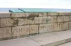 An Ontario Heritage Trust plaque in Kingston, Ontario recognizes the Rush–Bagot Agreement (44°13′48″N 76°27′59″W / 44.229894°N 76.466292°W / 44.229894; -76.466292). A plaque also stands at the former site of the British Legation in Washington, D.C. (38°54′13.7″N 77°3′8.4″W / 38.903806°N 77.052333°W / 38.903806; -77.052333) where the agreement was negotiated. A monument stands on the grounds of Old Fort Niagara as well (43°15′48″N 79°03′49″W / 43.263347°N 79.063719°W / 43.263347; -79.063719), featuring reliefs of both Rush and Bagot, as well as the words of the treaty.[11]