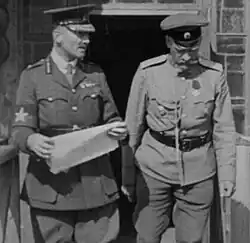 In 1918, with the German Army advancing toward Moscow in Operation Faustschlag, the Russian Soviet Federative Socialist Republic under Lenin made many concessions to the German Empire in return for peace. The Allies felt betrayed by the Treaty of Brest Litovsk signed on 3 March 1918.[48] Towards the end of World War I, Britain began to send troops to Russia to participate in the Allied intervention in the Russian Civil War which lasted up to 1925, aiming to topple the newly-formed socialist government the Bolsheviks had created. As late as 1920, Grigory Zinoviev called for a "holy war" against British imperialism at a rally in Baku.[49]