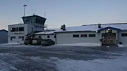 The airport has a 880-by-30-meter (2,887 by 98 ft) asphalt runway aligned 15–33 (roughly north–south).[1] The airport consists of a passenger terminal and an operations building. The terminal has a capacity of sixty passengers per hour and one airliner on the apron.[18] Twenty people work at the airport,[16] which is five minutes from Storslett. Free parking, taxis and car rental is available.[19]
