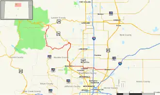 ![]() Map of northern Colorado with SH 7 highlighted in red | ||||