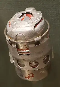 Smoke Incendiary For operational use, without holes, red upper half, lower half black with lettering on the bottom F and F1, respectively.[8]
