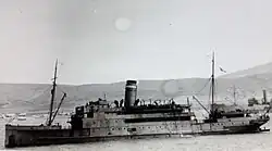 Re-fitted in Alexandria in the spring of 1918, and after being held up by a serious fire that broke out while she was in harbour, she was finally able to leave for Malta early in June. During her voyage to Malta, the Imperial German Navy submarine SM UB-105 torpedoed and sank her in the Mediterranean Sea 240 nautical miles (440 km) east-southeast of Malta[3] with the loss of three of her crew members.