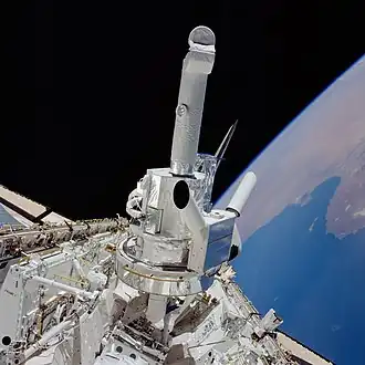 The Spacelab Infrared Telescope (IRT) was also flown on the mission.[3] The IRT was a 15.2 cm (6.0 in) aperture helium-cooled infrared telescope, observing light between wavelengths of 1.7 to 118 μm.[3] It was thought heat emissions from the Shuttle would corrupt long-wavelength data, however it still returned useful astronomical data.[3] Another problem was that a piece of mylar insulation broke loose and floated in the line-of-sight of the telescope.[3] IRT collected infrared data on 60% of the galactic plane.[2] (see also List of largest infrared telescopes) A later space mission that experienced a stray light problem from debris was Gaia astrometry spacecraft launch in 2013 by the ESA - the source of the stray light was later identified as the fibers of the sunshield, protruding beyond the edges of the shield.[11]