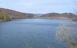 One of the nature park's projects is the 218-kilometre-long "premier" long-distance path, the Saar-Hunsrück-Steig[7] from Perl on the border with Luxembourg via Mettlach, Weiskirchen and the Roman city of Trier to the Prims Reservoir, continuing via the Erbeskopf, the circular rampart of Otzenhausen, to the Wildenburger Kopf and finally to Idar-Oberstein.