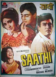 Saathi (transl. Partner) is a 1968 Indian Hindi-language romance film written and directed by C. V. Sridhar. The film stars Rajendra Kumar and Vyjayanthimala, with Simi Garewal, Pahari Sanyal, David Abraham Cheulkar, Veena and Ram Mohan as the ensemble cast while prominent actors such as Shashi Kapoor, Nanda, Sanjeev Kumar, Shabnam, D.K. Sapru and Pratima Devi made guest appearances. The film was produced by S. Krishnamurthy and T. Govindarajan of Venus Pictures. The film's score was composed by Naushad with lyrics provided by Majrooh Sultanpuri. It was edited by N. M. Shankar and filmed by Marcus Bartley.
