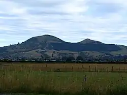 Saddle Hill is a prominent landmark overlooking the northeastern end of the Taieri Plains in Otago, New Zealand. Within the limits of Dunedin city, it is located 18 kilometres to the west of the city centre, between Mosgiel and Green Island, and is clearly visible from many of the city's southern hill suburbs. A lookout on the northern slopes of the hill commands a good view across the plains, with Lake Waihola visible 25 kilometres to the west in clear weather.