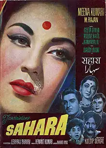Sahara (transl. Support) is a 1958 Hindi-language drama film directed by Lekhraj Bhakri and produced by Kuldeep Sehgal under the K. S. Films banner. The film stars Meena Kumari, M. Rajan, Kanhaiya Lal, Kuldip Kaur, and Manoj Kumar. It tells the story of Leela (Kumari), a woman facing emotional and societal struggles in a conservative post-independence setting. The film's soundtrack was composed by Hemant Kumar, with lyrics penned by Bharat Vyas.