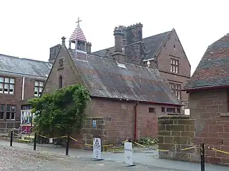The monastic buildings, other than the gatehouse, were demolished in 1861[6] and were replaced by a house designed by Edward Hodkinson for the 2nd Marquess of Westminster.[8] Alterations were made to the house in about 1870–72 and again in 1894–96 by the Chester architect John Douglas for the 1st Duke of Westminster.[9] In the 1880s the building was occupied by Earl Grosvenor.[4] The garden were redesigned in 1901–02 by Harry Inigo Triggs.[10] The buildings were converted into a school in 1977[6] and it now forms Abbey Gate College, which is a private coeducational school for pupils aged 4–18.[11]