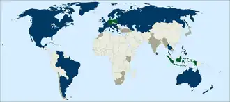 ![]() Blue: Water Gray: Never participated in OG Dark Gray: Participated in earlier OG Green: Country participated for the first time Dark Blue: Country participated also on previous games Red: Country boycotted the sailing event of the OG |