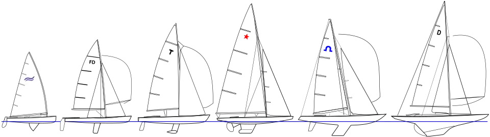 | Class | Type | Event | Sailors | Trapeze | Mainsail | Jib/Genoa | Spinnaker | First OG | Olympics so far |