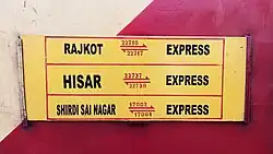 The 17001 / 17002 Secunderabad–Sainagar Shirdi Express is an express train belonging to Indian Railways South Central Railway zone that runs between Secunderabad Junction and Sainagar Shirdi in India.