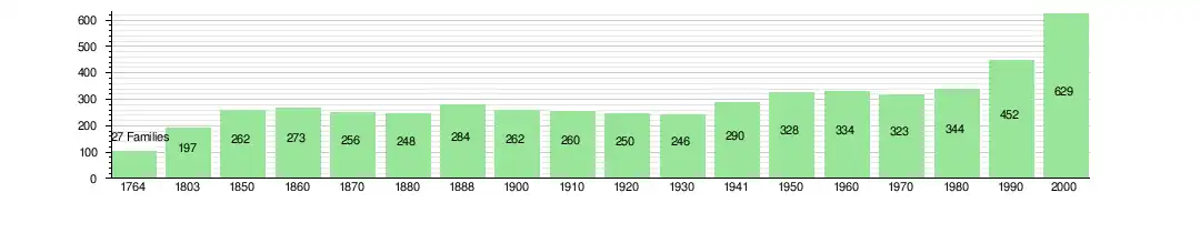 As of 2000, there were 200 private households in the municipality, and an average of 2.9 persons per household.[9] There were 37 households that consist of only one person and 27 households with five or more people. Out of a total of 207 households that answered this question, 17.9% were households made up of just one person and there were 2 adults who lived with their parents. Of the rest of the households, there are 50 married couples without children, 99 married couples with children There were 7 single parents with a child or children. There were 5 households that were made up of unrelated people and 7 households that were made up of some sort of institution or another collective housing.[10]
