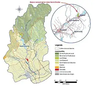 The drainage basin includes six main sub-basins, that are, excluding the Saint-Charles' basin itself: