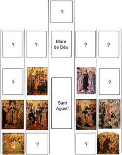 The Saint Augustine Altarpiece is a Catalan Gothic painting in egg tempera by Jaume Huguet and Pau Vergós made between 1462 and 1475. The long duration of the work was caused by financial reasons, and it is assumed that work was begun by Huguet and finished by other members of his workshop, in particular Pau Vergós. The altarpiece was commissioned by the guild of tanners to be placed on the altar of the Augustinian friary of Sant Agustí Vell ("Old St Augustine") in Barcelona, Spain. The panel measures 250 × 193 × 9.5 cm and has been in the Museu Nacional d'Art de Catalunya (MNAC) in Barcelona since 1927.[1]